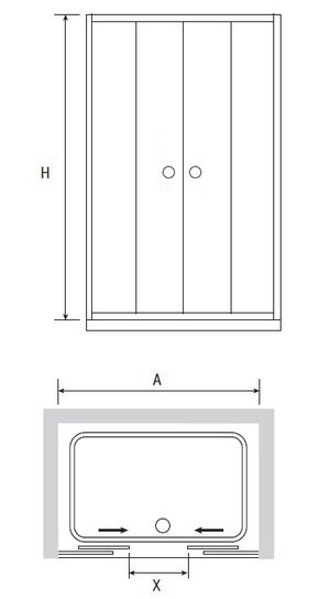 Раздвижная душевая дверь из центраСтекло закаленное безопасное 5 мм обработано Easy Clean Четыре полотна стекла два сдвижных из центра Регулируемые двойные ролики Магнитные уплотнители Регулировка модели - 40 + 10 мм Профиль анодированный алюминий Цвет профиля - Хром Имеет возможность изменить конструкцию на квадратную или прямоугольную применив боковую панель RGW Z-12
