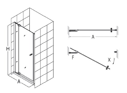 Душевая дверь с неподвижным элементомСтекло закаленное безопасное 8 мм Регулировка ширины петель +20 мм Петли Хром Стальные регулируемые петли Боковой элемент с полочками Универсальная установка