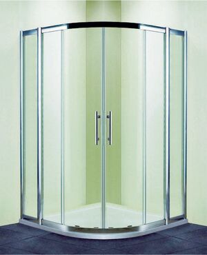 Душевой уголок полукруглый R-550 Стекло закаленное безопасное 8 мм обработано Easy Clean Регулировка ширины профиля + 20 мм Профиль Хром Двойные стальные регулируемые ролики Имеет возможность изменить конструкцию на ассиметричную применив боковую панель RGW Z-41 или RGW Z-42 с полками