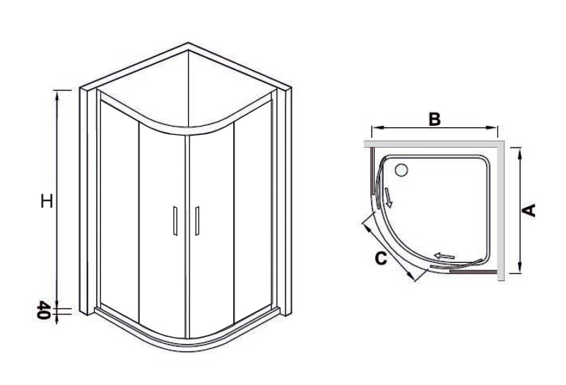 Душевой уголок полукруглый R-550Стекло закаленное безопасное 8 мм обработано Easy Clean Регулировка ширины профиля + 20 мм Профиль Хром Двойные стальные регулируемые ролики Имеет возможность изменить конструкцию на ассиметричную применив боковую панель RGW Z-41 или RGW Z-42 с полками