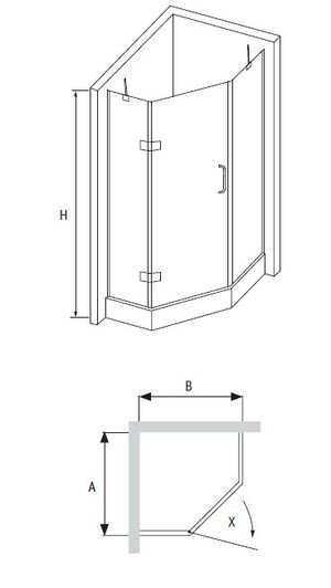 Душевой уголок трапеция с распашной дверьюСтекло закаленное безопасное 8 мм Стекло обработано покрытием Easy Clean Распашная душевая дверь на петлях Петли Хром Пристенные регулируемые петли + 10 мм Возможна установка душевой двери с открыванием как влево так и вправо путем ее переворачивания Силиконовые и магнитные водонепроницаемые уплотнители Вверху кронштейны держатели стекла Внизу коннекторы крепления боковых стекол к полу или поддону ВНИМАНИЕ Установочный размер модели на край поддона. РЕКОМЕНДУЕМ установку данной модели на плитку или барьер