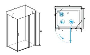 Душевой уголок квадратный / прямоугольныйМодель с распашной дверью RGW LE-04 и неподвижным боковым стеклом RGW Z-14 Распашная дверь с функцией подьема Боковое стекло с верхним угловым держателем Стекло закаленное безопасное 6 мм Ручка из нержавеющей стали Профиль анодированный алюминий Цвет профиля - Хром Регулируемые пристенные профили 30 мм