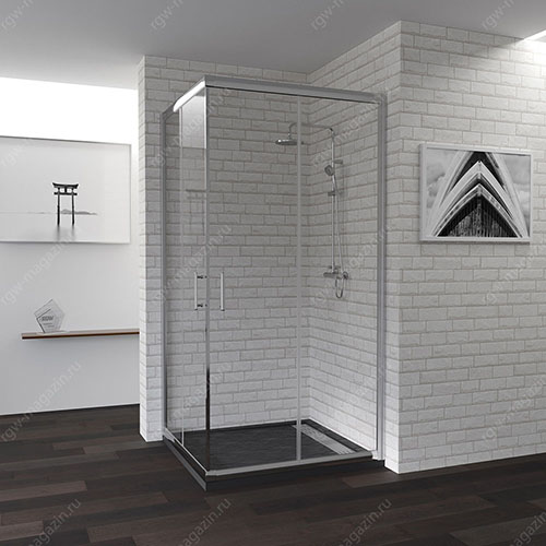Душевой уголок квадратныйДве раздвижные душевые двери широкий вход с центра Стекло: закаленное безопасное 6 мм Профиль: Хром Двойные стальные ролики Регулируемые пристенные профили +20 мм Силиконовые и магнитные водонепроницаемые уплотнители Без поддона