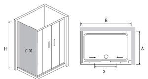Душевой уголок прямоугольный образуется при комплектации боковой панели Z-01 и душевой двери PA-11Душевая дверь раздвижная из центра Дверь из закаленного безопасного стекла - 6 мм Дверцы двери разъезжаются плавно от середины в разные стороны Боковая стенка из закаленного безопасного стекла - 6 мм Боковая стенка без верхнего и нижнего профиля Профиль Хром Регулируемые пристенные профили Аналог модели Domustar EF-01 и боковой стенки E-01/02