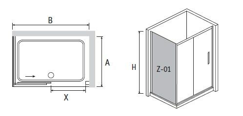 Душевой уголок прямоугольный образуется при комплектации боковой панели Z-01 и душевой двери PA-12Дверь из закаленного безопасного стекла - 6мм Состоит из 2-х секций одно неподвижное стекло и раздвижная дверь Дверь разъезжается плавно от угла Установка открытия двери как с левой так и с правой стороны Боковая стенка из закаленного безопасного стекла - 6 мм Боковая стенка без верхнего и нижнего профиля Профиль Хром Регулируемые пристенные профили Анодированные алюминиевые профили и направляющие Аналог модели Domustar EF-02 и боковой стенки E-01/02
