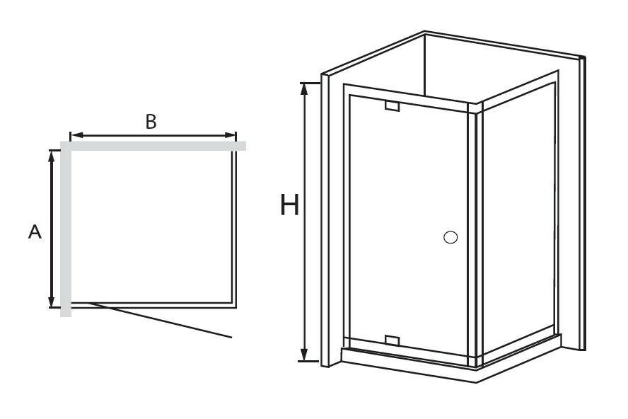 Душевой уголок прямоугольный с дополнительной боковой панелью Z-12Стекло закаленное безопасное 6 мм обработано Easy Clean Регулировка ширины двери + 10 см Боковая стенка крепится к двери Профиль Хром Универсальная установка открытия двери