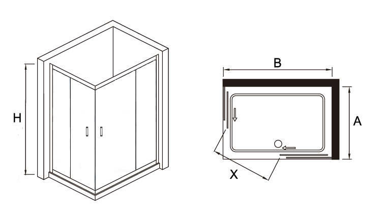 Душевой уголок прямоугольныйДве раздвижные душевые двери широкий вход с центра