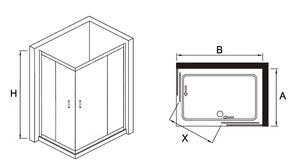 Душевой уголок прямоугольныйДве раздвижные душевые двери широкий вход с центра Стекло: закаленное безопасное 6 мм Профиль: Матовый хром / Хром Двойные стальные ролики Регулируемые пристенные профили +20 мм Силиконовые и магнитные водонепроницаемые уплотнители Универсальная установка Без поддона