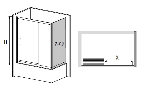 Шторка на ванну раздвижная трехстворчатая с боковым элементом Z-52Стекло закаленное безопасное 4 мм Три полотна стекла два сдвижных и одно неподвижное Регулируемые одинарные ролики Магнитные уплотнители Регулировка модели - 40 + 10 мм Установка открытия двери с левой или правой стороны Профиль анодированный алюминий Цвет профиля - Хром полированный