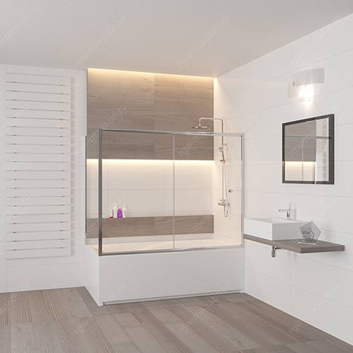 Шторка на ванну раздвижная двустворчатая с боковым элементом Z-52Стекло закаленное безопасное 5 мм