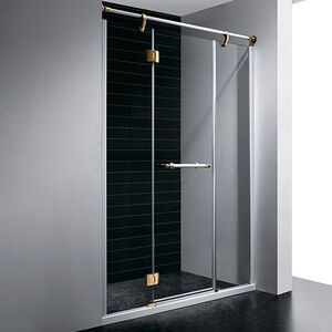 Распашная душевая дверьСтекло закаленное безопасное 8 мм Стекло покрыто Easy Clean Цвет стекла: Прозрачное Петли дверные стальные: Золото Профиль пристенный стальной регулируемый +10 мм Верхний стальной держатель белый с золотыми стальными наконечниками Универсальная установка открытия двери Дверная ручка стальная Белая с золотом