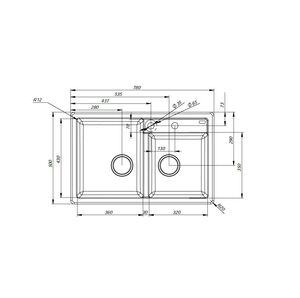 V22G782i87, Мойка, granucryl, серая, 2 чаши, 780*500, Vane G, ID