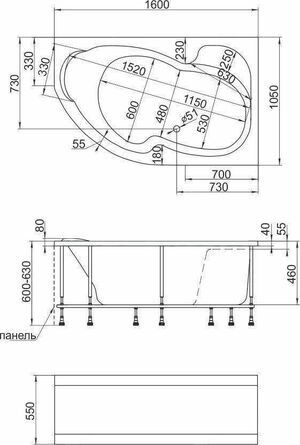 Акриловая ванна 1Мarka (Первая Марка) AURA L 1600x1050 мм