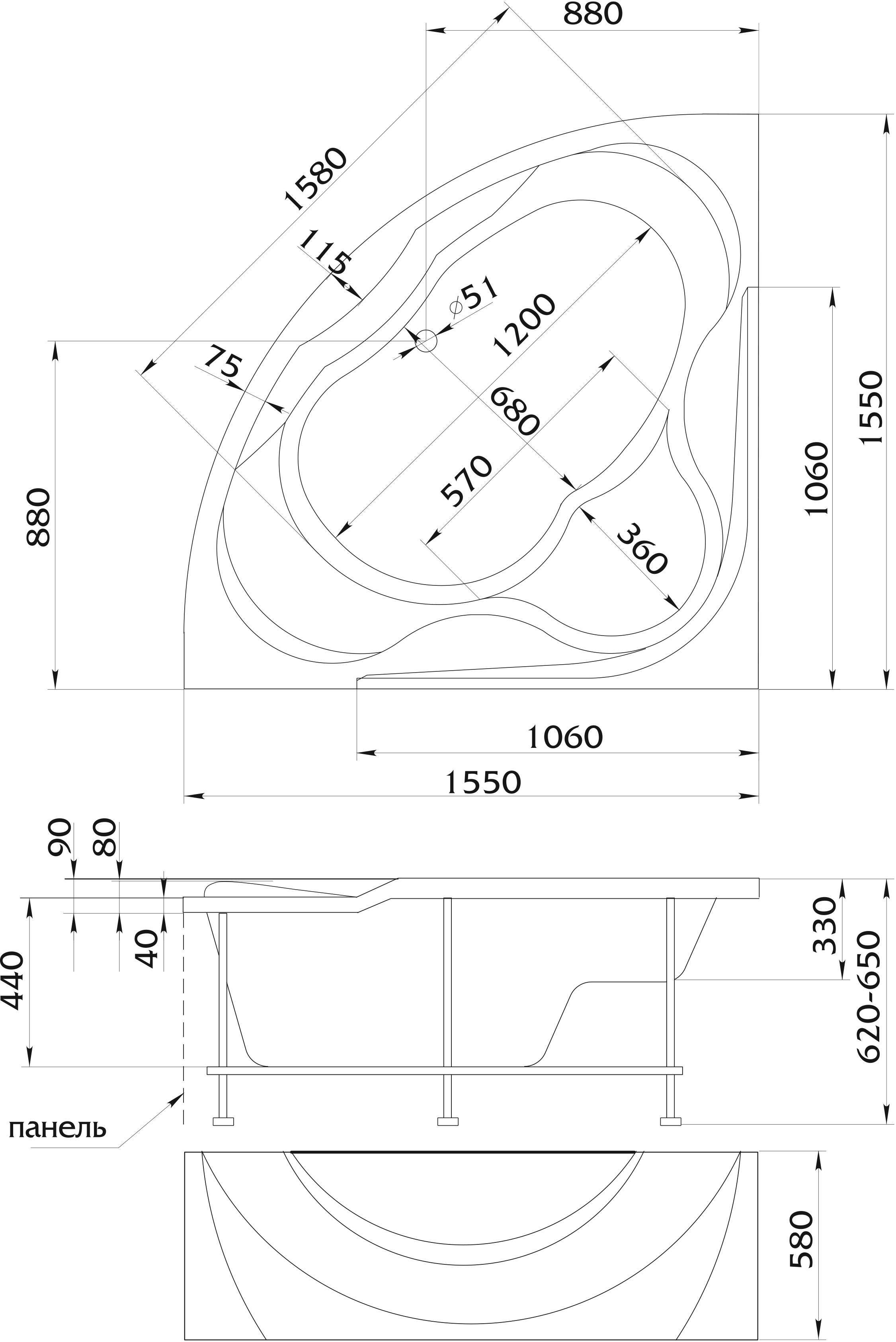 Акриловая ванна 1Мarka (Первая Марка) LUXE 1550x1550 мм